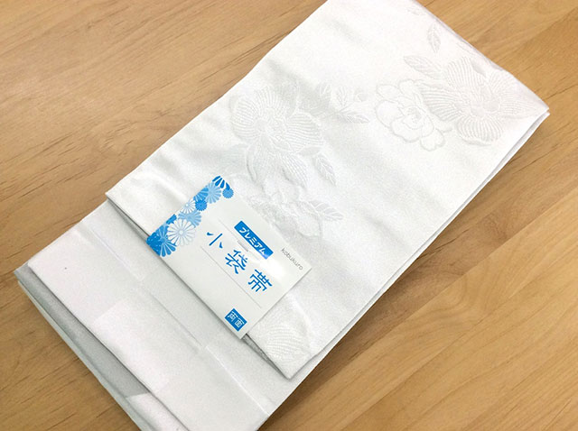 小袋帯 浴衣 半幅 両面 日本製 白 グレー 180625-7