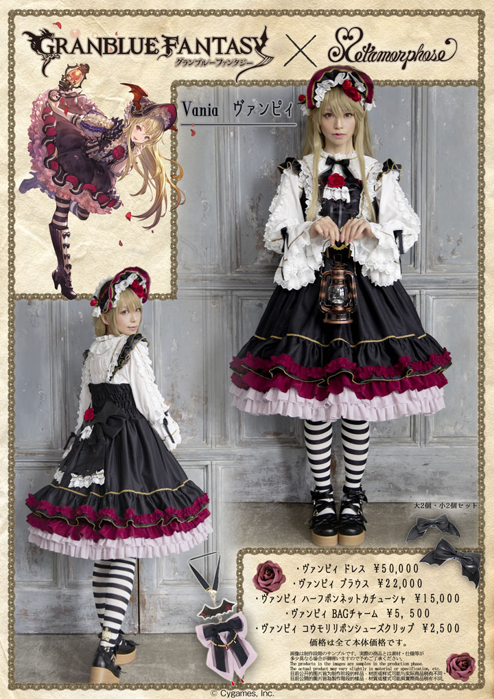 ハーフボンネットカチューシャ、ブラウス、BAGチャーム、リボンクリップと合わせたトータルコーデで、グラブルの世界観を楽しんで下さいね。