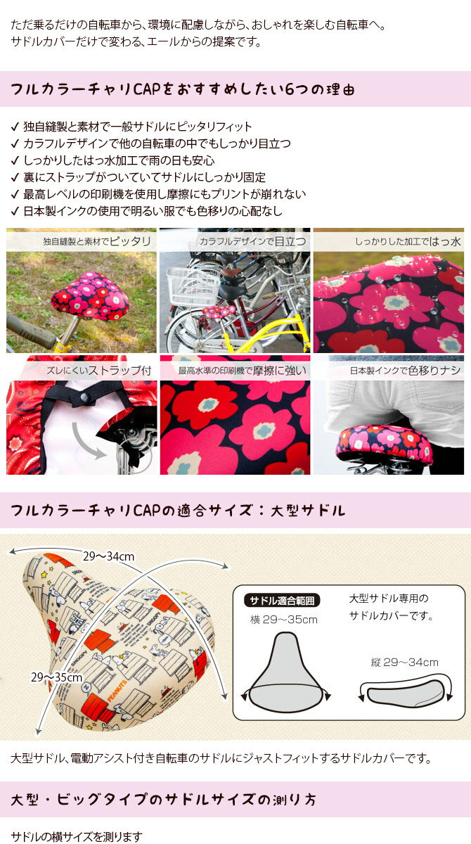 自転車サドルカバー フルカラーチャリCAP 大型用 はっ水加工 防水 くまのがっこう スヌーピー チャリカバー 自転車 大人 ママチャリ ちゃりんこ 電動アシスト付き ビッグタイプ PEANUTS aile06