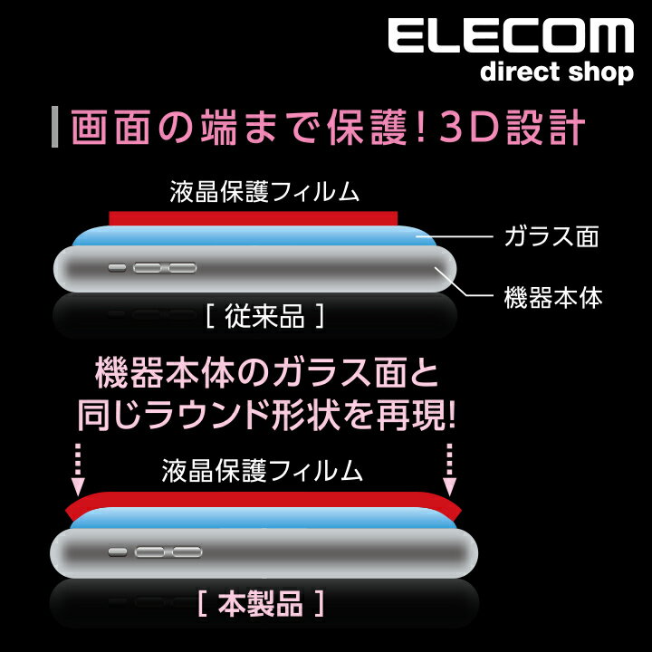 液晶画面全体を保護する 液晶画面の端の曲面まで保護することが可能です。