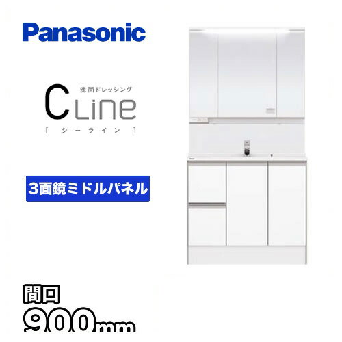 [XGQC90C5HMKHW-GQC90C3SPKM]パナソニック 洗面化粧台 CLine (シーライン) 間口:900mm/90cm ミラーキャビネット3面鏡(三面鏡) ミドルパネル(蛍光灯照明) くもりシャット 扉カラー:ホワイト 洗面台 収納 【送料無料】【メーカー直送のため代引不可】