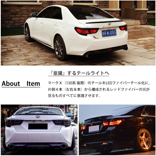 商品説明 マークX GRX130 後期 ファイバー LED テールランプレッドファイバーチューブ内蔵ハイフラ防止対策済み仕様(スペック)【セット内容】テールランプ本体 左右防水パッキン専用配線 適合車種マークX GRX130系 2012年8月〜後期※一部年式、グレードにより配線の加工が必要になる場合がございます※コーキングが必要になります※トランクテール部が設計上の仕様により、若干浮いております。